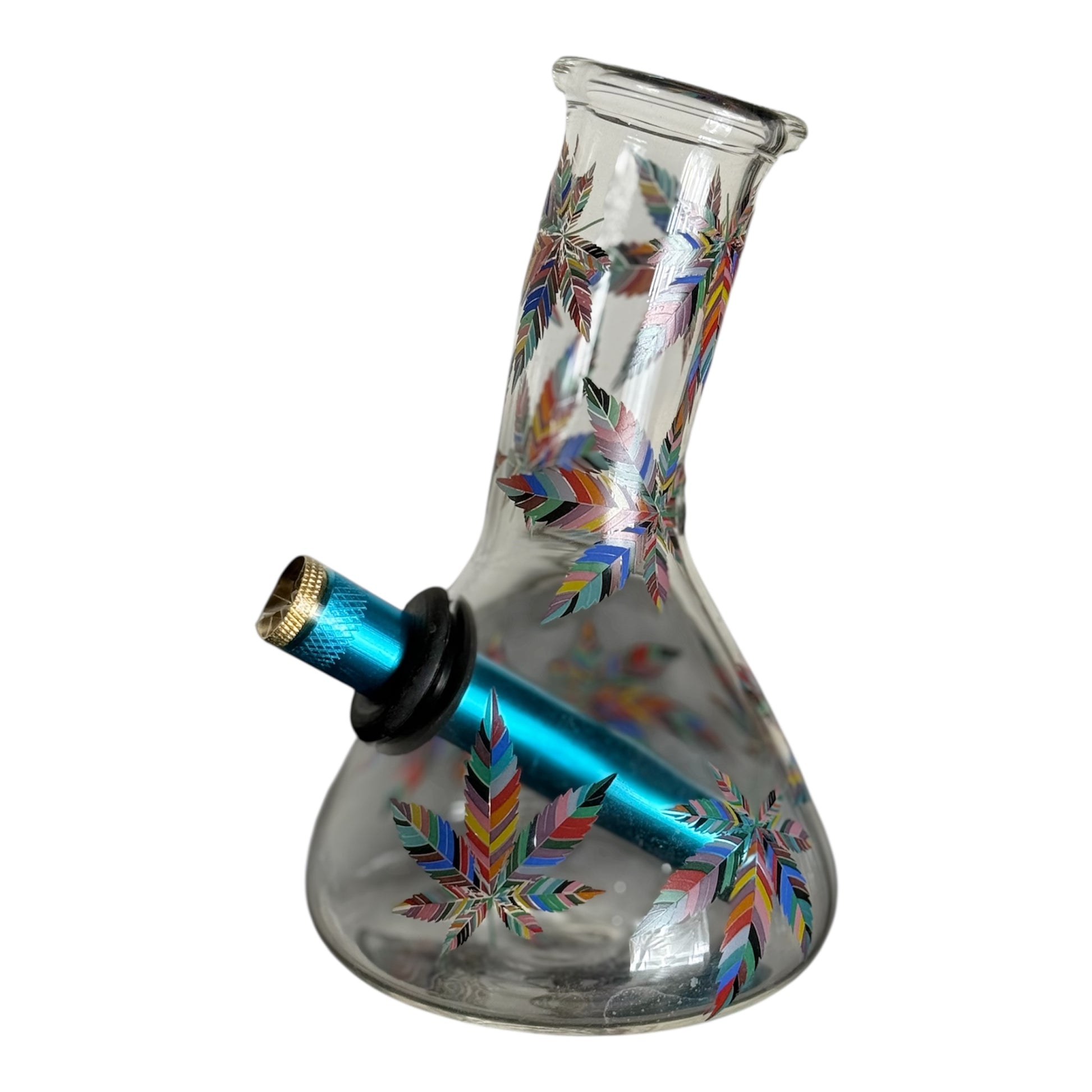 Rainbow Leaf Glass Beaker Bong – 15cm