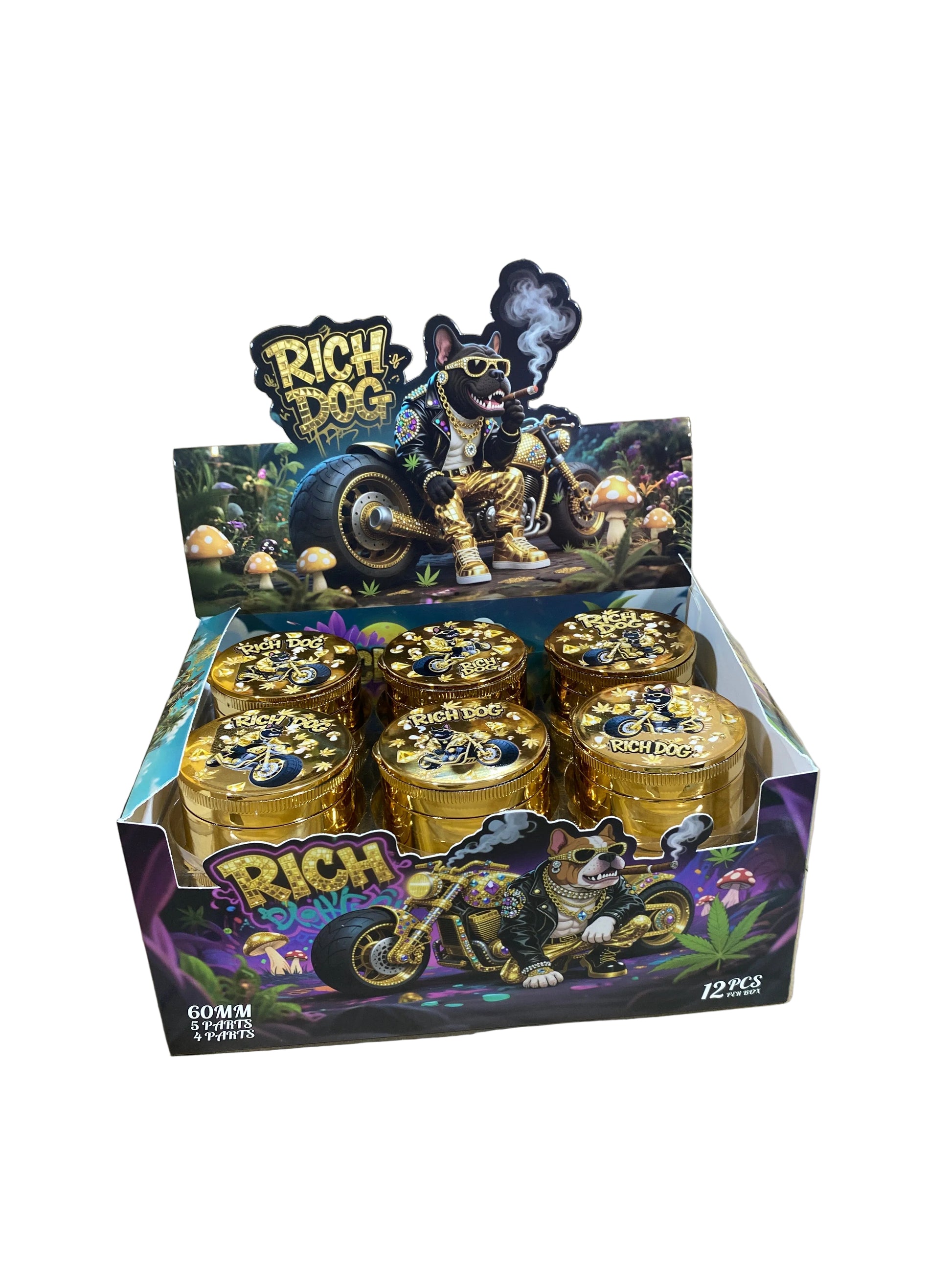 Rich Dog 4-Piece plastic Grinder X 12pk 60mm
